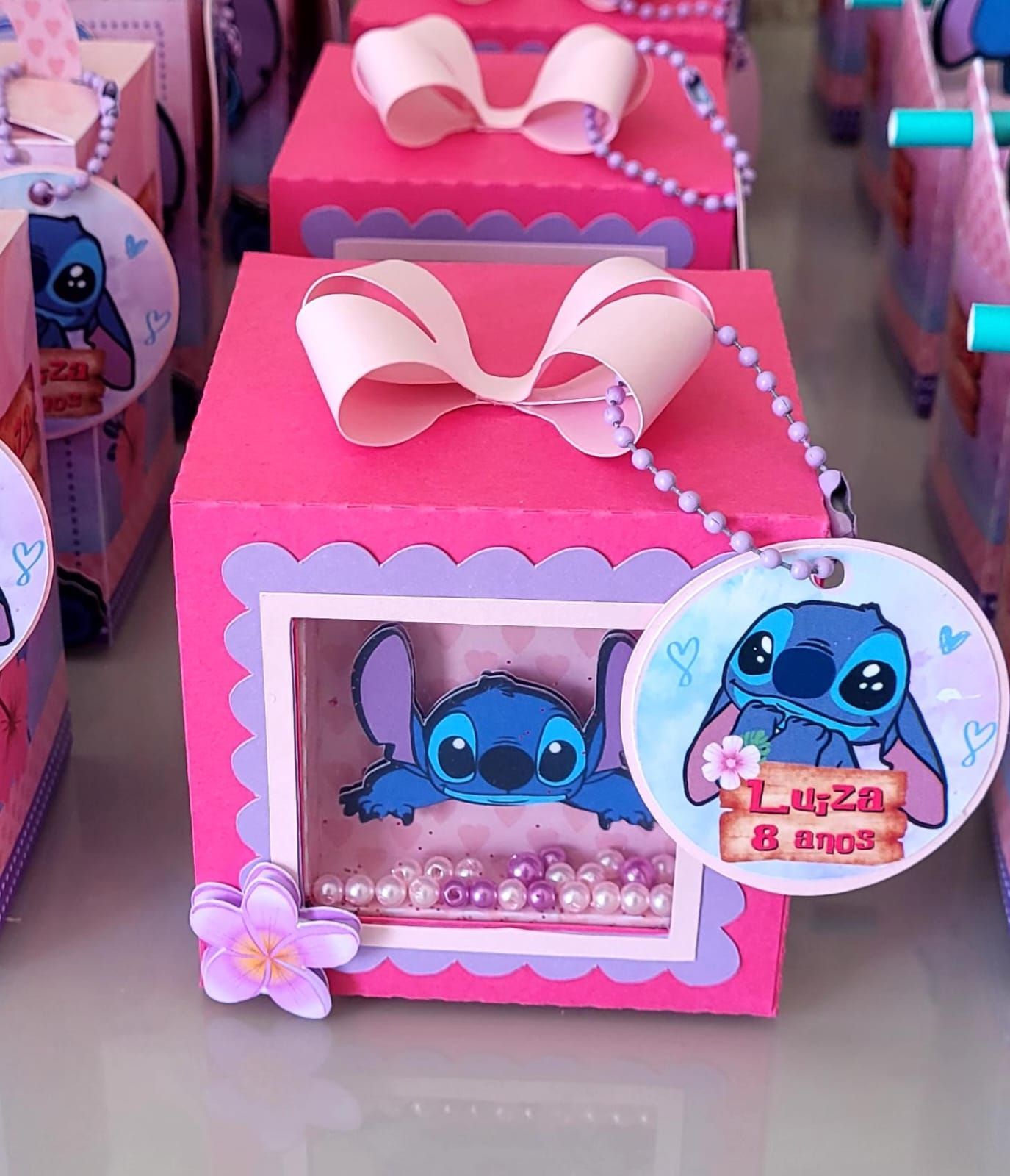 Aplique em 3D, camadas ou detalhes em lamicote. Adereços como pompons, pérolas, laço ou flores.